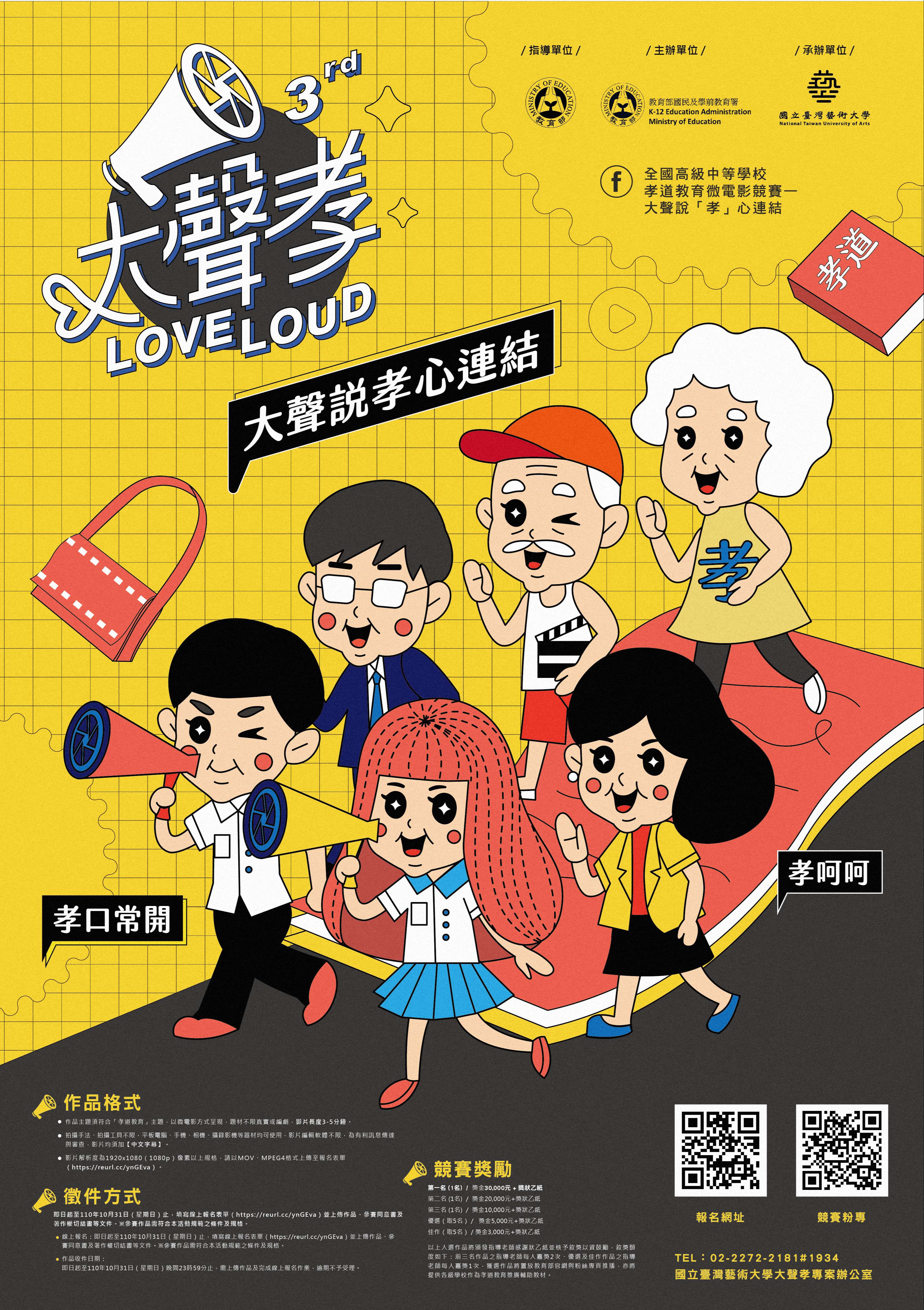 主旨:本校辦理教育部「110年全國高級中等學校『孝道教育』微電影徵件競賽」之校園宣傳(線上)講座,擬邀請貴校報名參與,請查照。