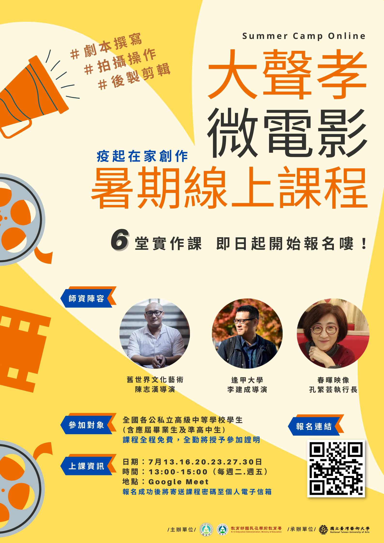 主旨:本校辦理教育部國民及學前教育署「大聲說『孝』心連結」計畫之暑期線上課程:「疫」起在家創作微電影,請協助轉知所屬人員並鼓勵學生踴躍報名參與,請查照。