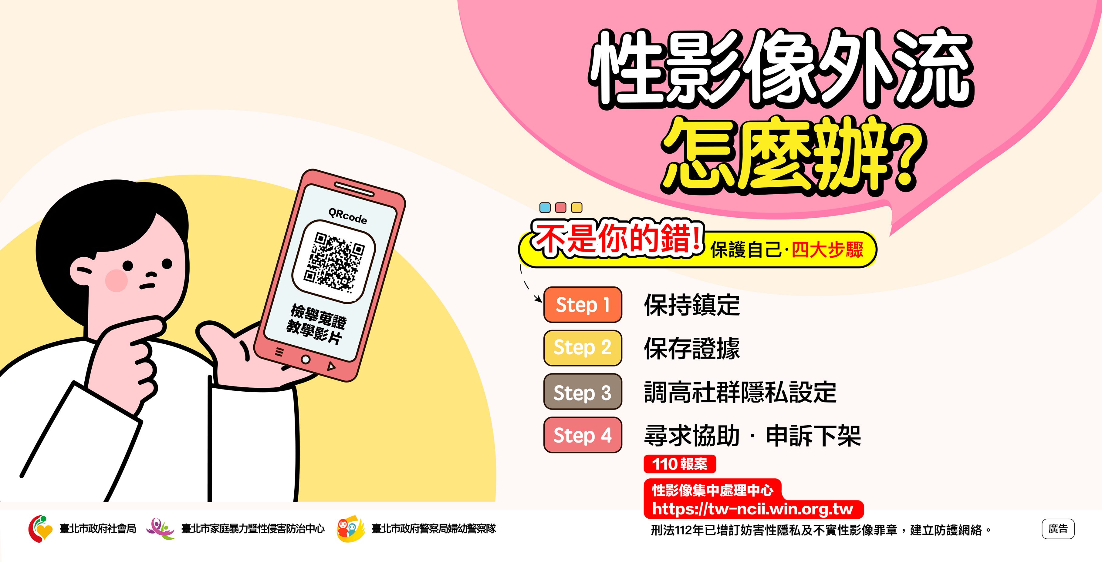 性影像外流不是你的錯—四大步驟:保持鎮定、保存證據、調高社群隱私設定、求助申訴下架。