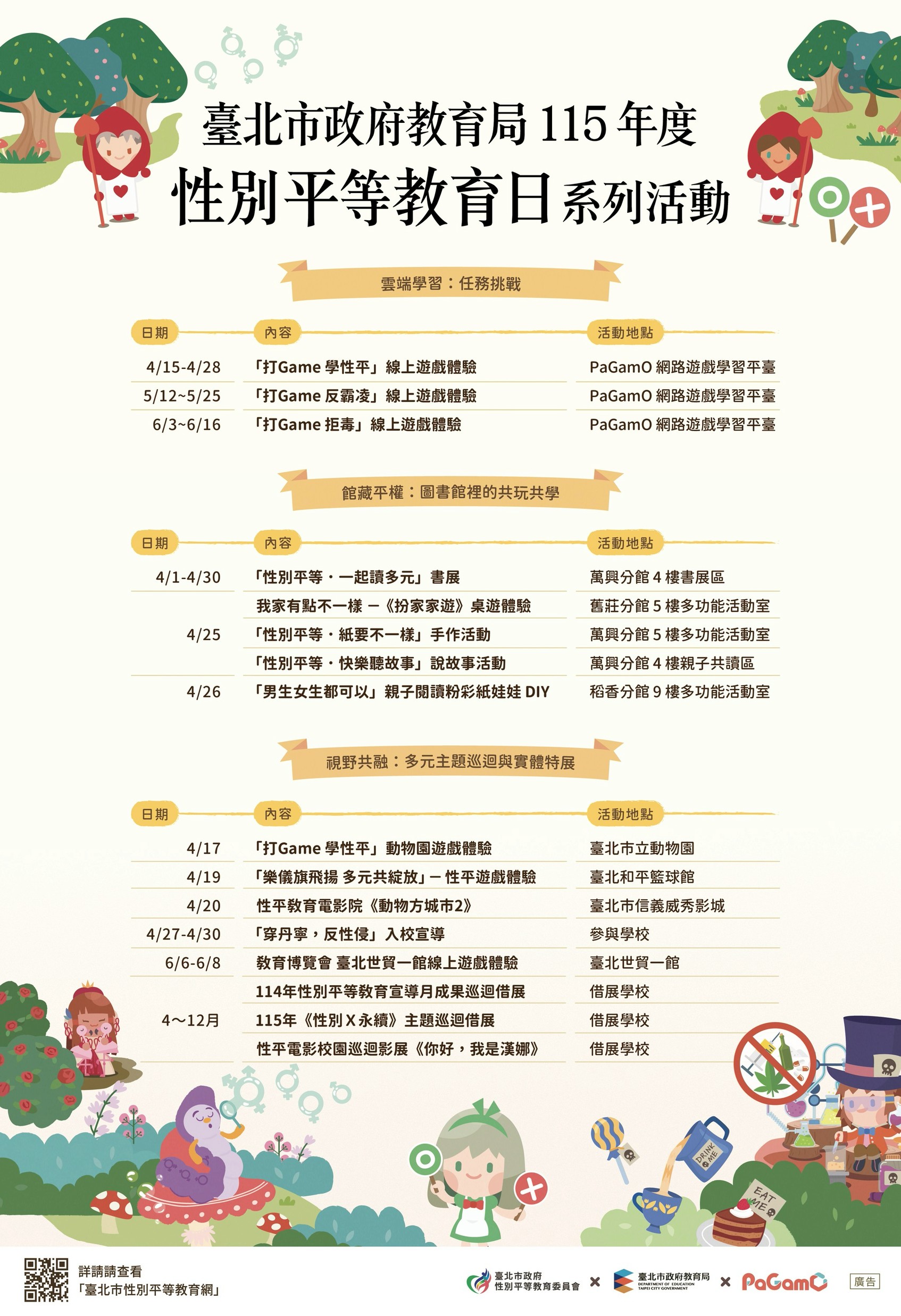 4、4月25日下午2時30分至4時,「性別平等.快樂聽故事」說故事活動,萬興分館4樓多功能活動室。