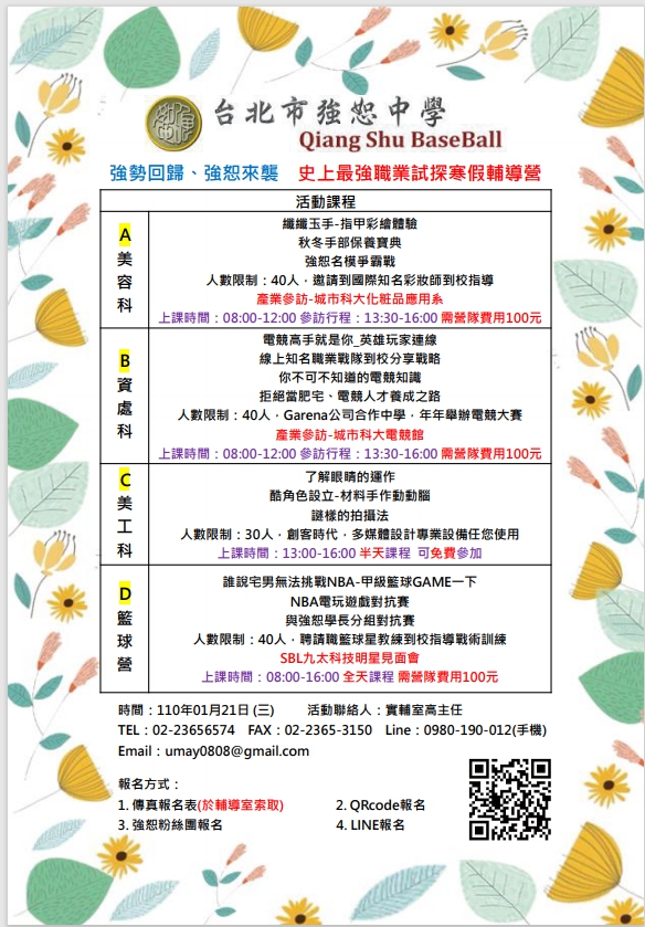 台北市強恕中學寒假職輔營線上報名 (google.com)