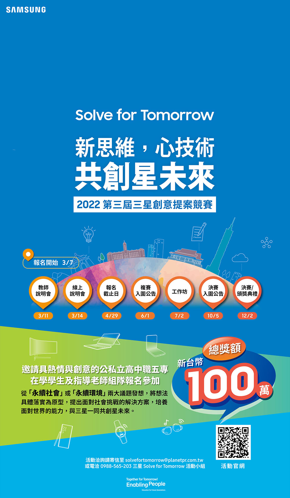 五、活動報名諮詢:三星Solve for Tomorrow活動小組 e-mail:solvefortomorrow@planetpr.com.tw 諮詢專線:0988-565-203
