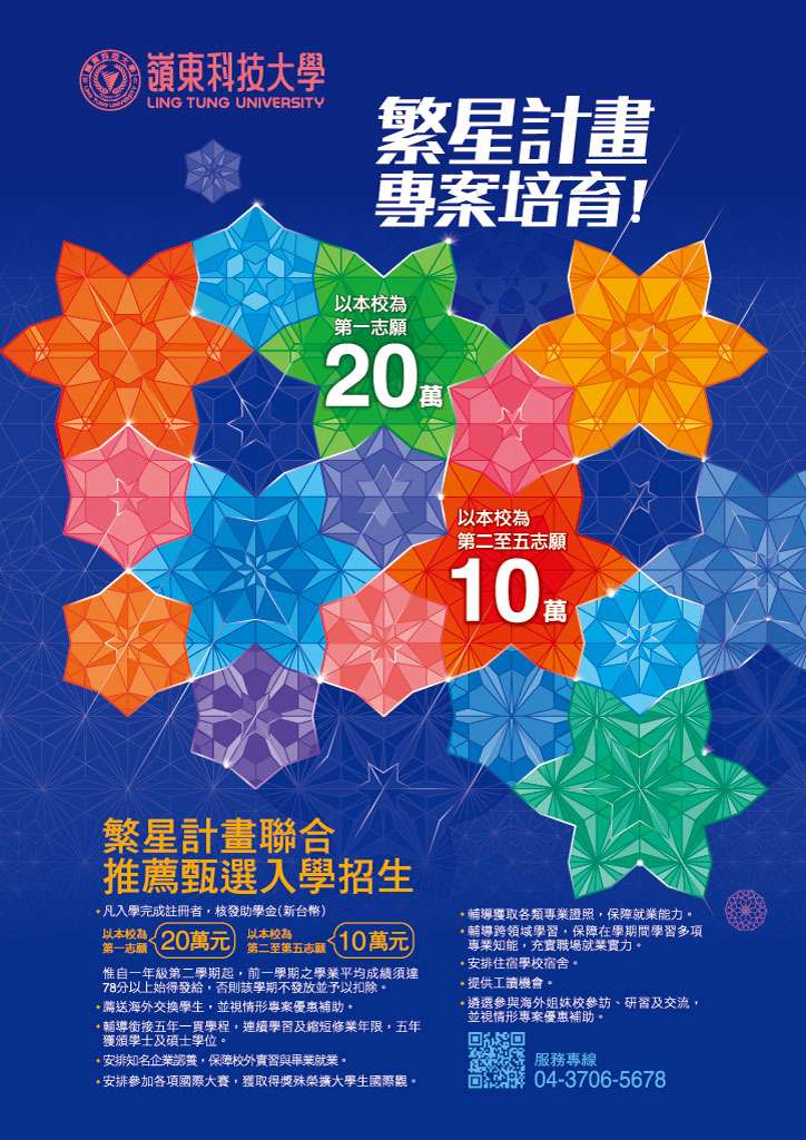 檢送嶺東科技大學112學年度科技校院繁星計畫聯合推薦甄選入學招生文宣資料,敬請轉知貴校學生。