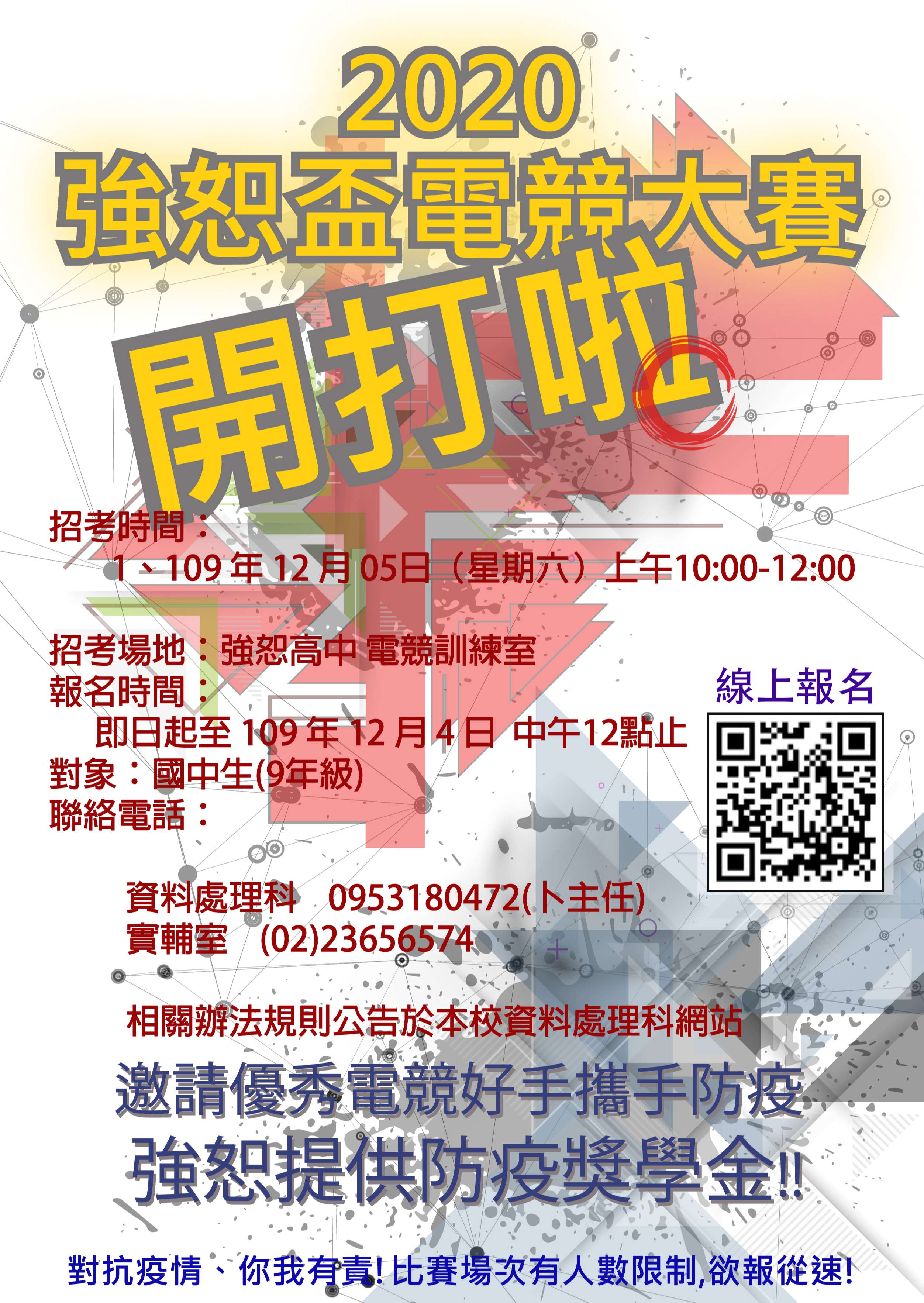 三、報名時間及方式:即日起至2020年12月3日下午17:00,填寫書面報名表或至強恕高中網站線上報名(網址http://www.qshs.tp.edu.tw),逾期不予受理。