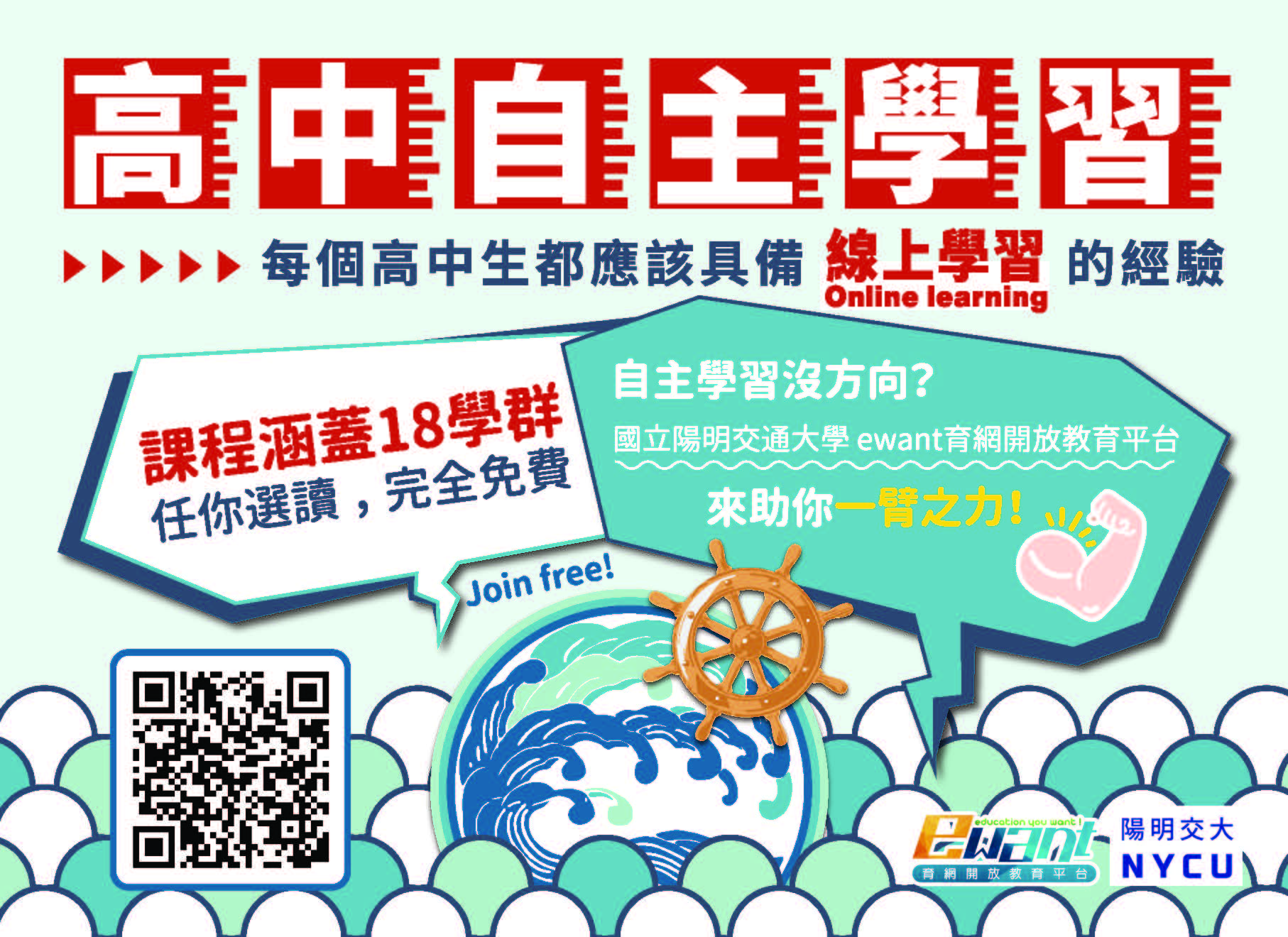 五、報名方式:即日起至2021年6月30日,至ewant育網開放教育平臺高中自主學習專區(https://reurl.cc/M7nRy4)免費註冊報名,報名方式可參考附件二。