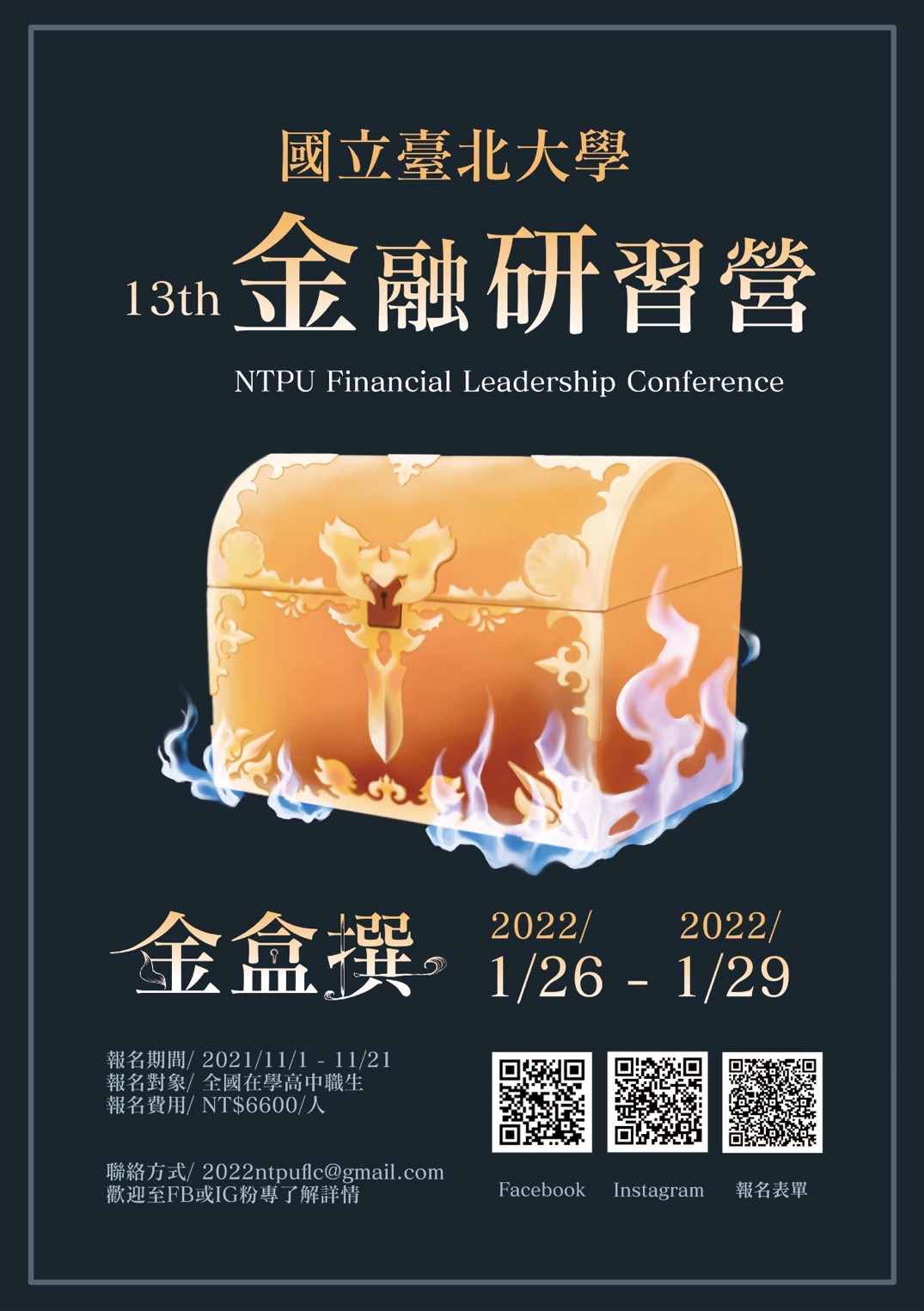 四、若對於營隊有任何疑問,歡迎洽詢國立臺北大學金融研習營社群平台:Facebook粉專https://www.facebook.com/ntpufcm5、Instegram粉專instagram.com/2022_ntpu_flc_。