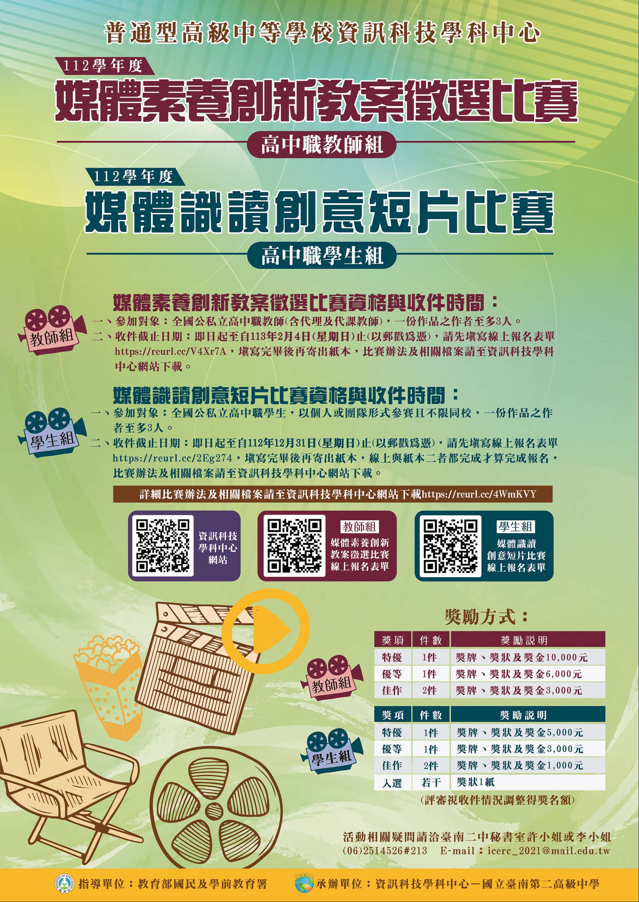 五、檢附媒體素養創新教案徵選比賽實施計畫及海報電子檔各1份;另郵寄紙本海報至各校敬請協助張貼公告。